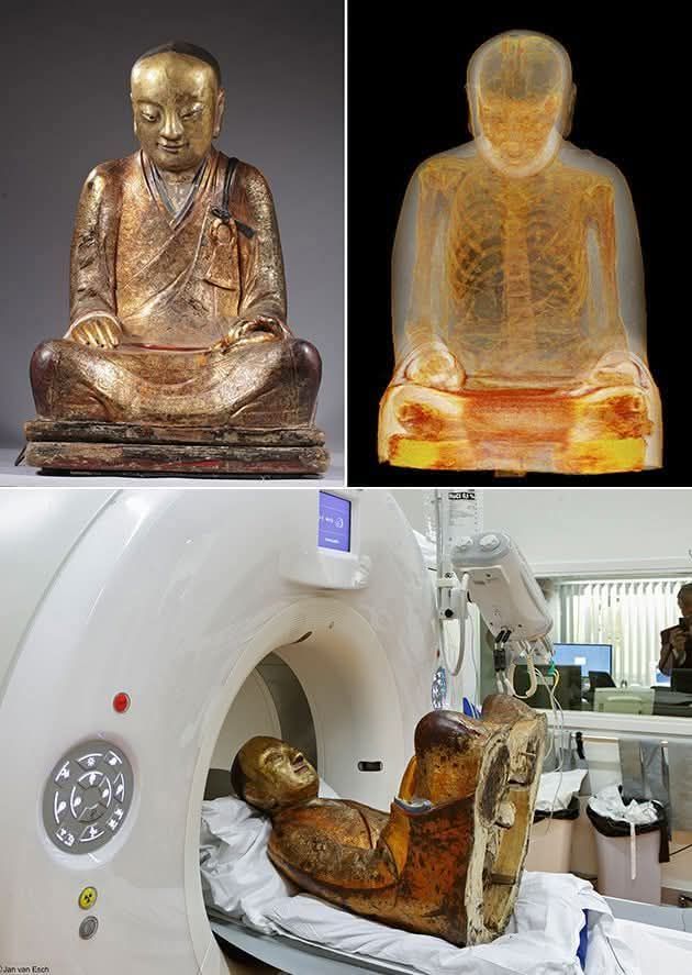 ২০১৫ সালে নেদারল্যান্ডসের Meander Medical Center-এ একটি চীনা বৌদ্ধ মূর্তির CT স্ক্যান ও এন্ডোস্কোপি করা হয়। গবেষণায় দেখা যায়, মূর্তির ভিতরে এক সন্ন্যাসীর আসীন মমি আছে।